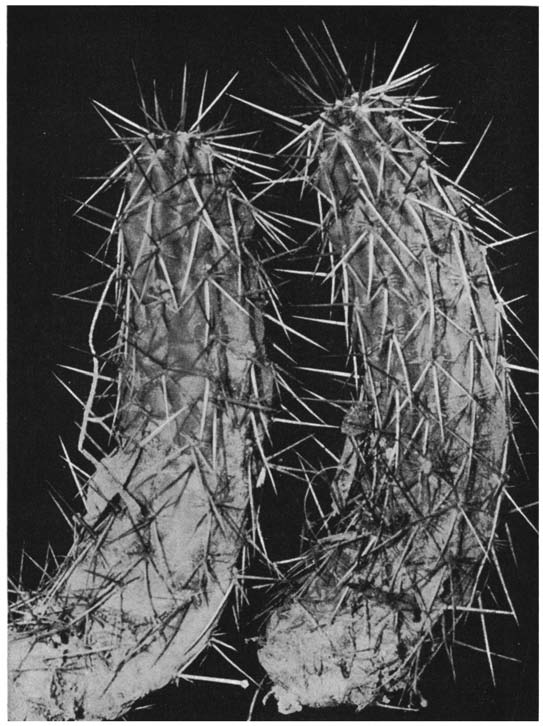 Отдельные побеги коротко-цилиндрические, тонкие, более или менее искривлённые.