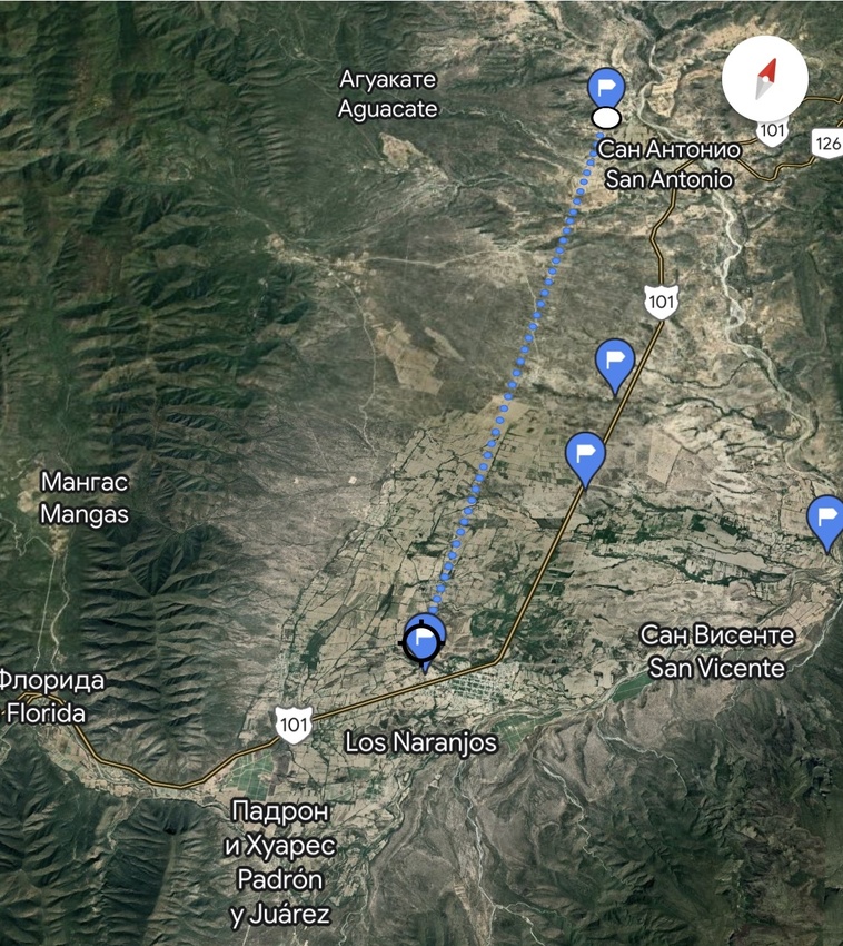 Александр, как видно на карте от San Antonio где произрастают элонгатусы до Jaumave около 20-25 км. A.trigonus v horacekii произрастает на окраине г. Jaumave. Там существует только одна локация с этими тригонусами. Типовая точка находится на холмах у мелкой речки где сейчас обустроены городские купальни «Balneario»… а в метрах 50 - 100, пустошь поросшая низким кустарником. Там также встречаются подобные растения.Сообщение от АлександрC Посмотреть сообщениеНо в Jaumave вроде бы растут и обычные растения, может их локации на местности не пересекаются?