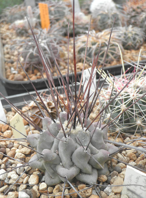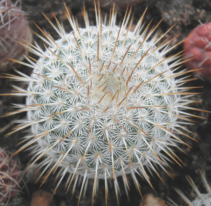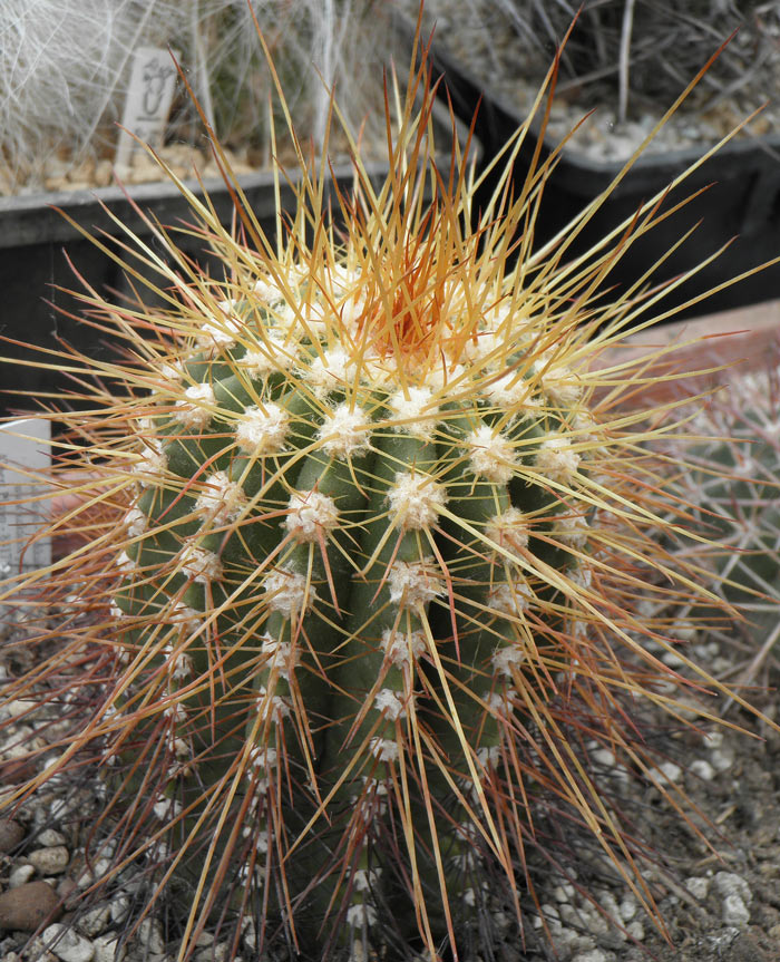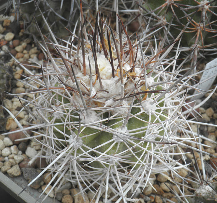 Еще несколько симпатичных "чилийцев", вместе с предыдущими, дающие представление о границах изменчивости тех или иных признаков в рамках отдельных таксонов. Видимо, можно создать неплохую и интересную мини-коллекцию на базе "видов" и форм относимых к неопртерии (эриозице) сениле, где проследить градиент изменчивости колючек у растений по цвету, длине и степени искривления.