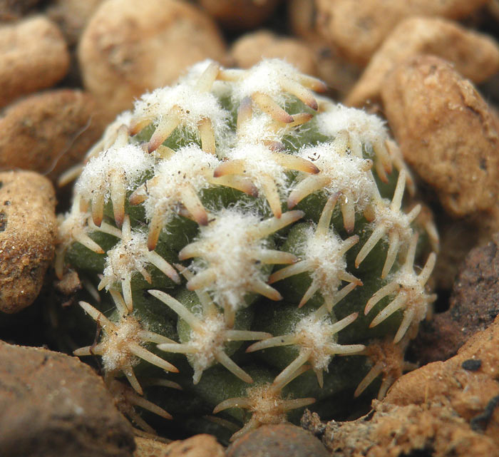 Ну и наконец - растение-легенда. Пигмееоцереус дензиакулеатус, иногда относимый к пигмееоцереусам, а некоторыми авторами к хаагеоцереусам. Благодаря, как я понимаю, некоторым украинским коллегам, в настоящее время растение перестало быть экстремально редким, хотя и остоется востребованным и относительно дорогим при покупке. Но понимания - что это и откуда появилось - это не добавило.