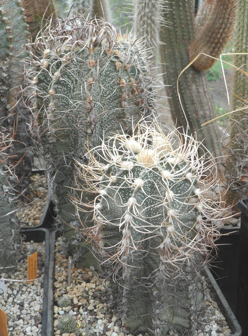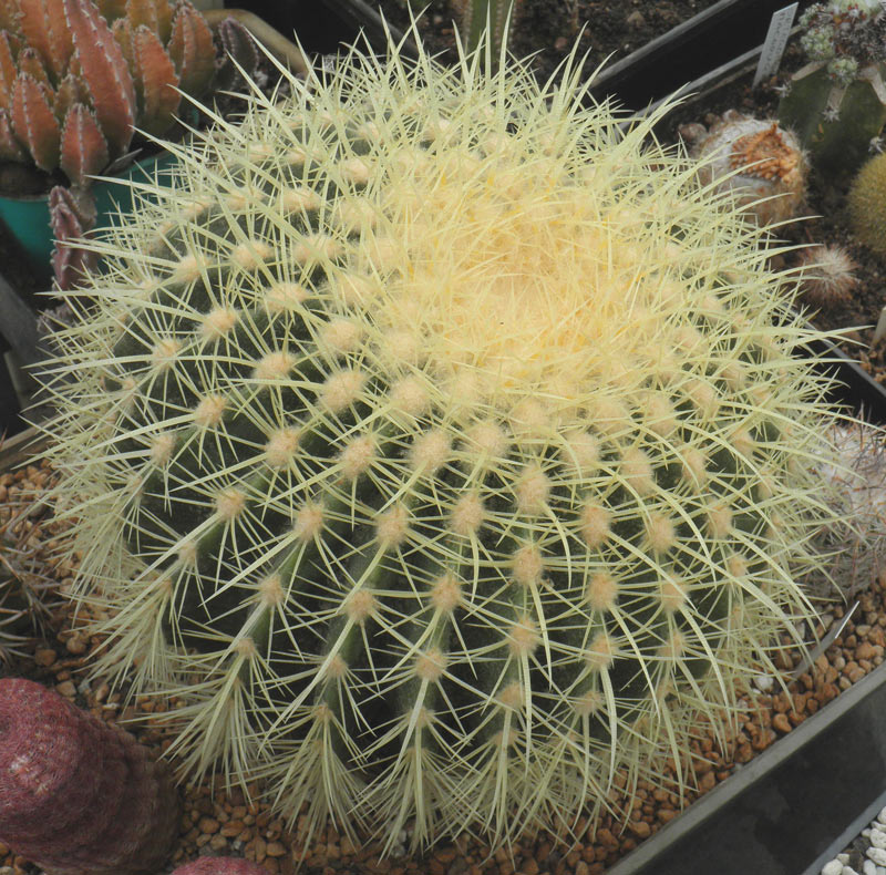 Как и у многих из нас, так и в этой коллекции есть растение "из детства", которым хозяин дорожит. Это большой (с волейбольный мяч)эхинокактус грузонии, выращенный хозяином коллекции из семени. И пусть есть более интересно околюченные "современные" культивары, это растение будет оставаться таким же дорогим.