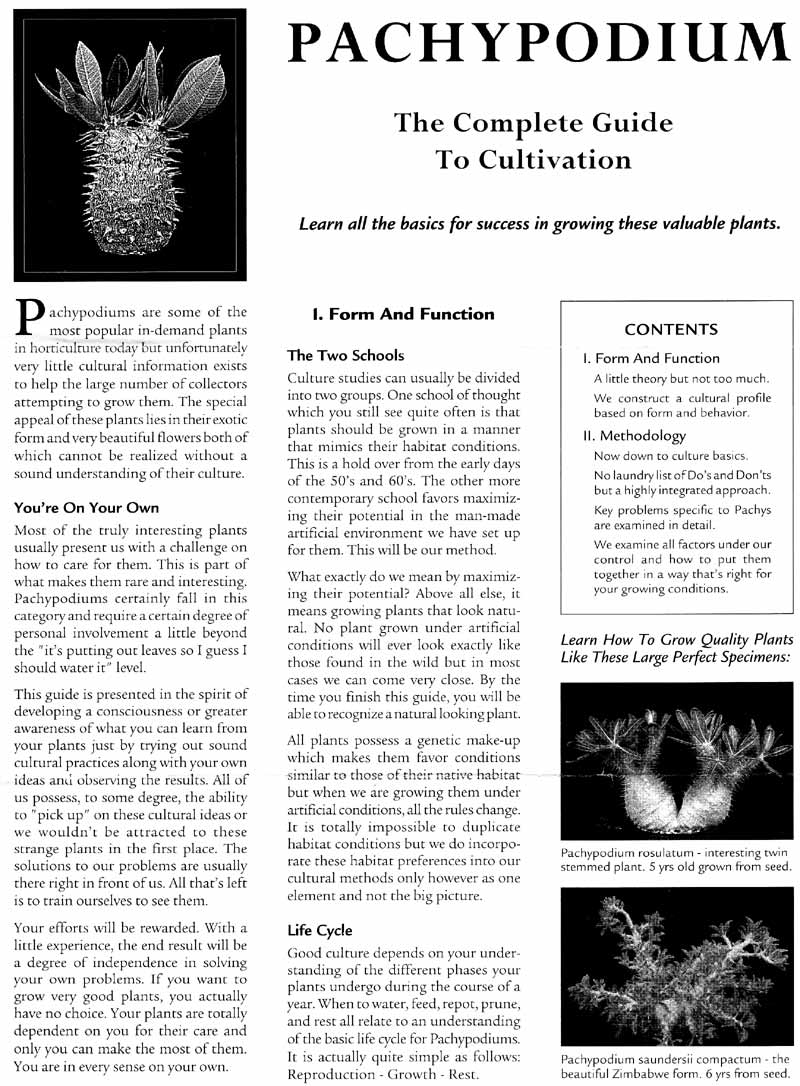 Pachypodiums are some of the most popular in-demand plants in horticulture today but unfortunately very little cultural information exists to help the large number of collectors attempting to grow them.