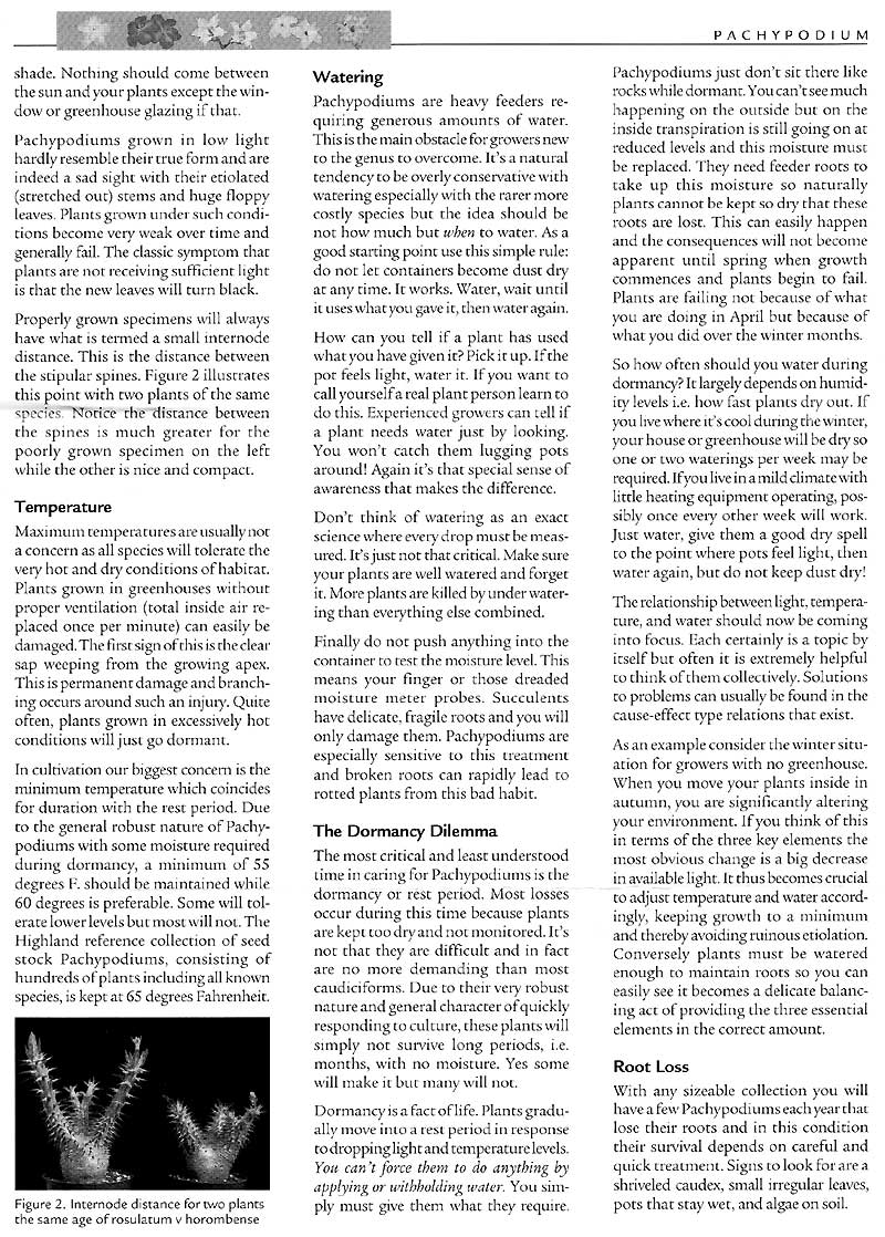 The most critical and least understood time in caring for Pachypodiums is the dormancy or rest period.