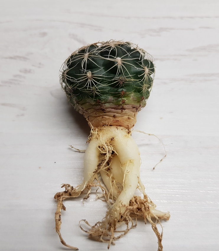 Похоже, что корень отгнил (слабая надежда на то, что Вы его обломали). Посмотрите, если на изломе - размягчение, разжижение и изменение цвета тканей - это гниль. Еще иногда запах чувствуется - кислый или брожения. Если гниль - вооружайтесь лезвием, спиртом и режьте под прямым углом к линии, соединяющей корень и верхушку, слоями, как морковку. После каждого срезанного слоя - дезинфицируйте бритву, а лучше прокаливайте на газу. Руки - тоже (не на газу). Ваша задача - не изрезать весь кактус, но при этом - добраться до здоровых тканей (с запасом). Перед "чистовым срезом" - дезинфицируйте лезвие особенно тщательно. Не держите рядом ампутированные ткани - спустите их в унитаз, проветрите помещение, дезинфицируйте руки. Вообразите себя хирургом, имеющим дело с гангреной и коронавирусом одновременно. Если гниль (черные точки по камбиальному кольцу) захватила более 50% высоты растения - выбрасывайте, он не укоренится. Желательно остановиться на корневой шейке. Я обычно подсушиваю срез на воздухе, ничем не присыпая, тут Вам посоветуют присыпать срез. С учетом Вашей неискушенности, можно толченым углем. Лезвие должно быть очень острым. Можете сфотографировать срез и прислать фото, будем Вам дальше советовать. Подсушить срез не так просто, сейчас в квартирах очень сухой воздух. Я бы делал это в более прохладном месте (на подоконнике, не у батареи отопления). Излишняя сухость сама по себе может приводить к повреждению тканей (излишнему усыханию, особенно, если срез у Вас получится обширный).